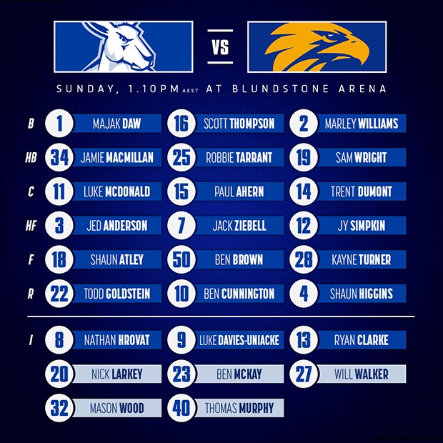 The Roos will return to their home away from home at Blundstone Arena for the must-win clash, with Will Walker's debut already confirmed, and Tom Murphy, Mason Wood, Ben McKay and Nick Larkey other potential inclusions.