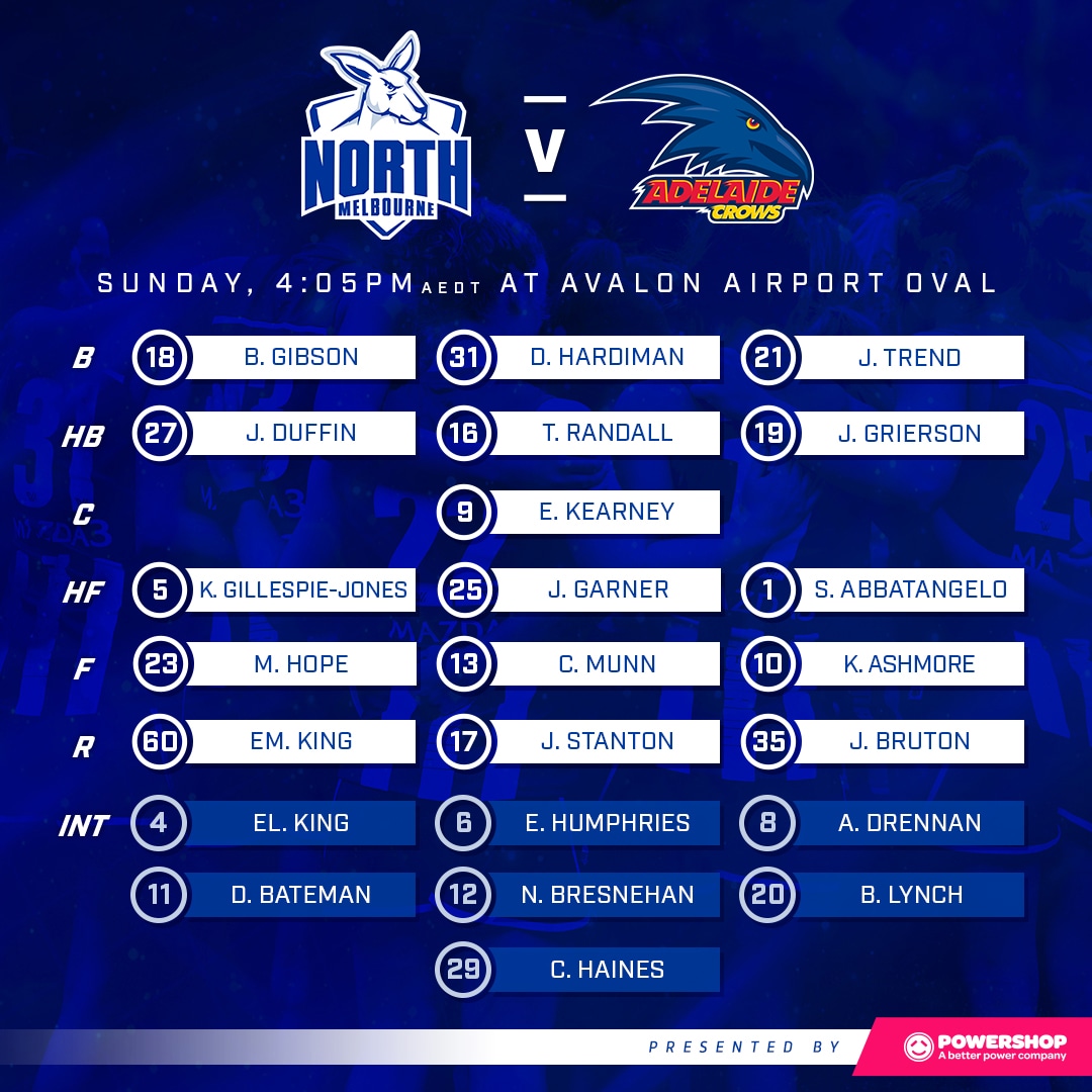 Having missed last week with a wrist injury, Nicole Bresnehan has been included on an extended interchange bench, while Tasmanian Chloe Haines is also in the mix to play her second game in the royal blue and white.
